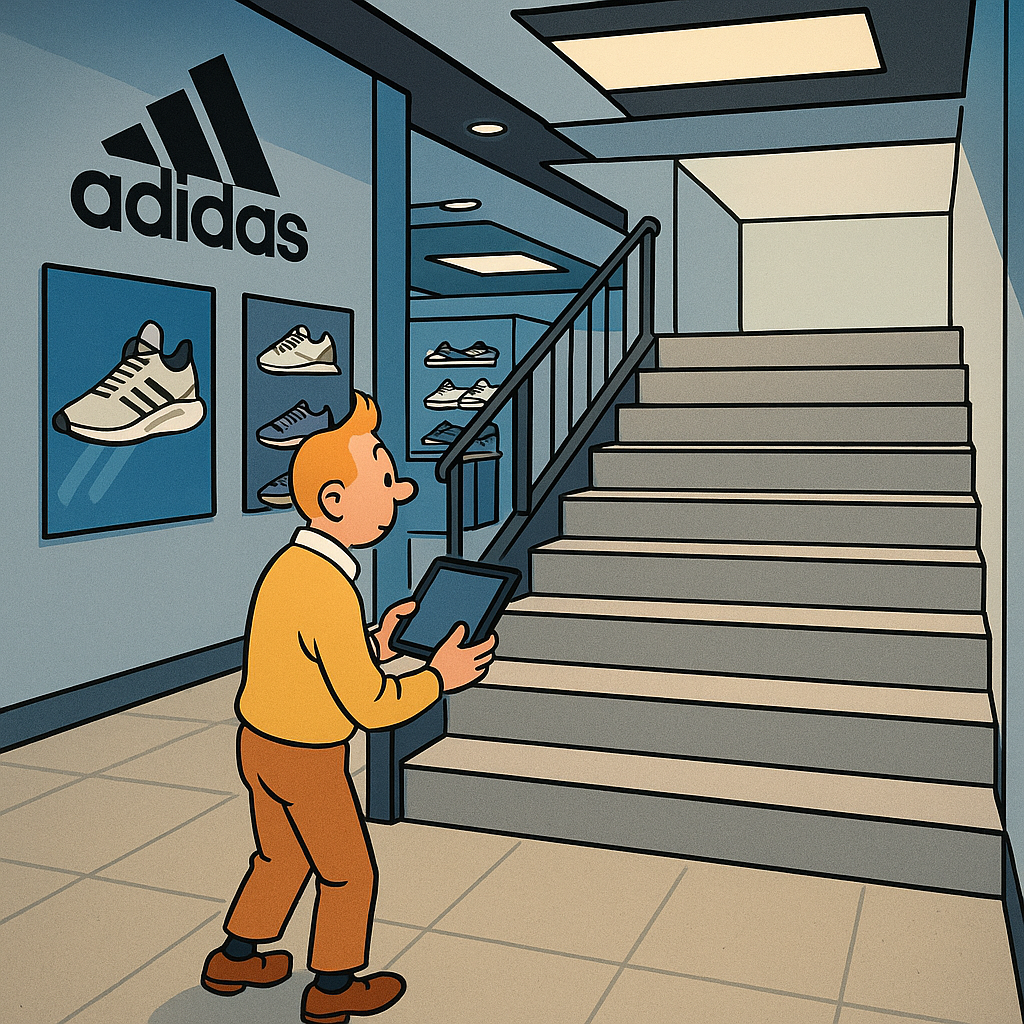 This guide applies only to adidas stores with more than one floor. Some locations—like multi-level adidas stores with staircases—require careful scanning. Follow the step-by-step guide below to ensure a seamless transition between floors.