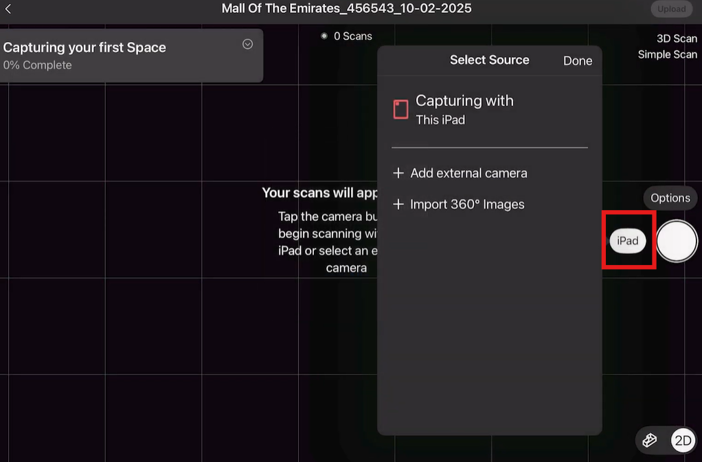 - Rotate slowly around your iPad and keep it in one spot as you capture each dot. Your feet should be the only thing moving here.